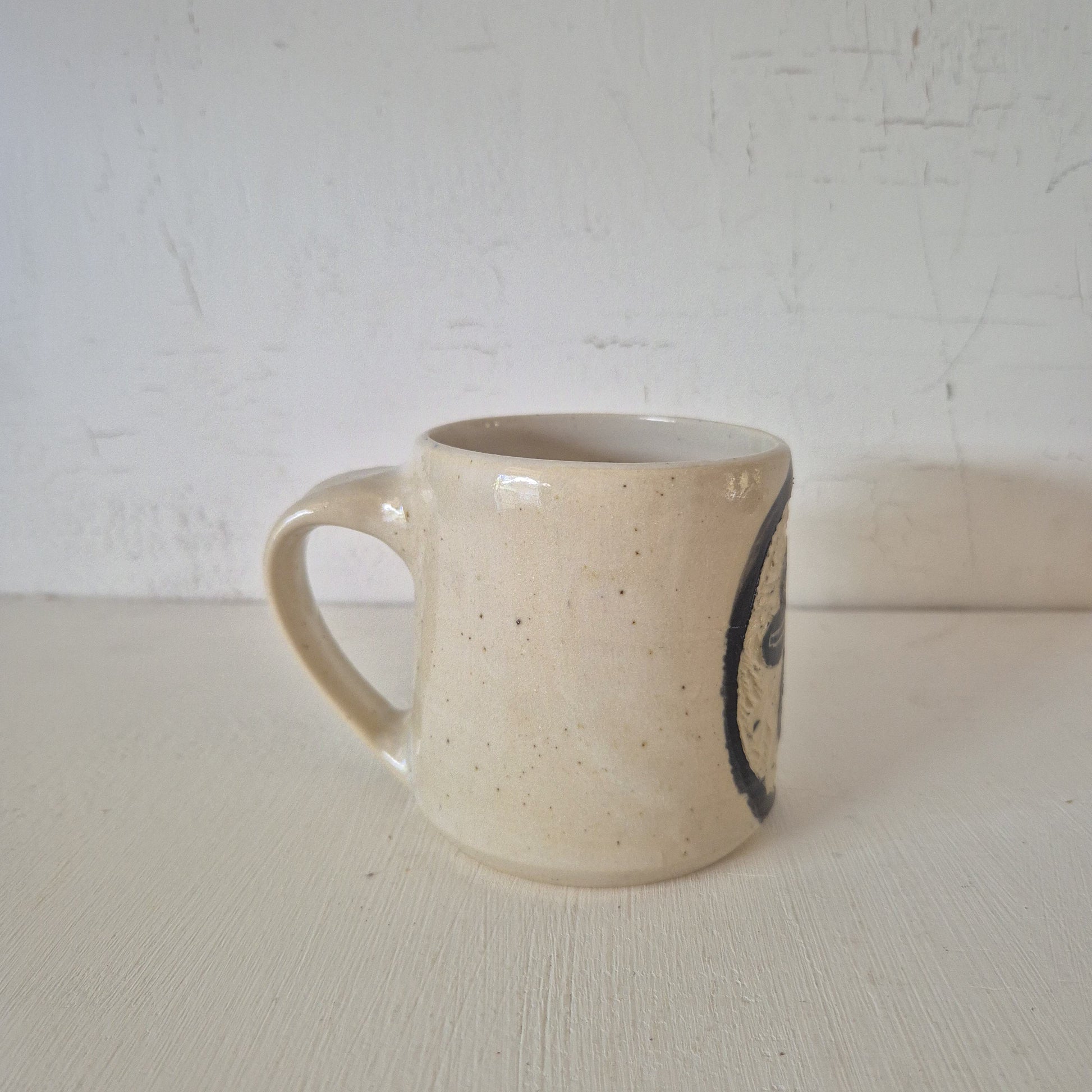 This mugs has been wheel thrown, carved, glazed and fired by me in my home studio.