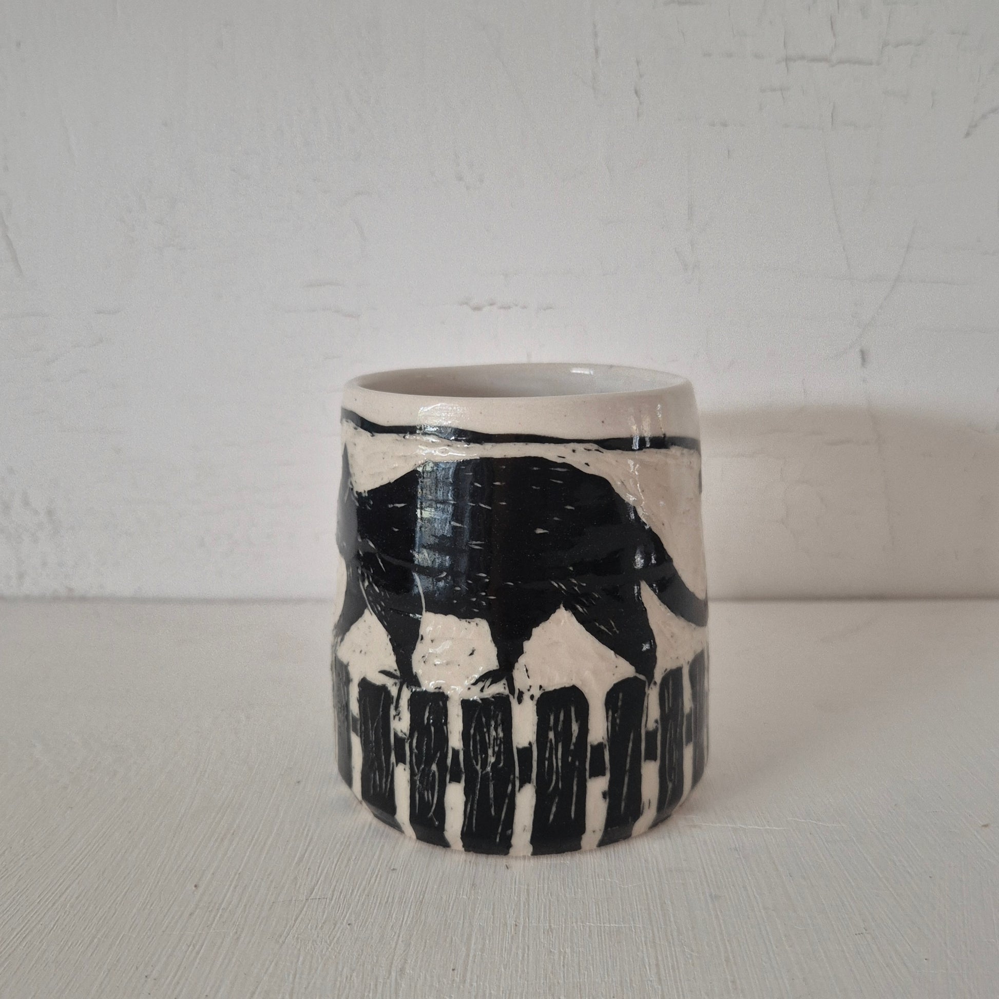 This mug has been wheel thrown, carved, glazed and fired by me in my home studio.